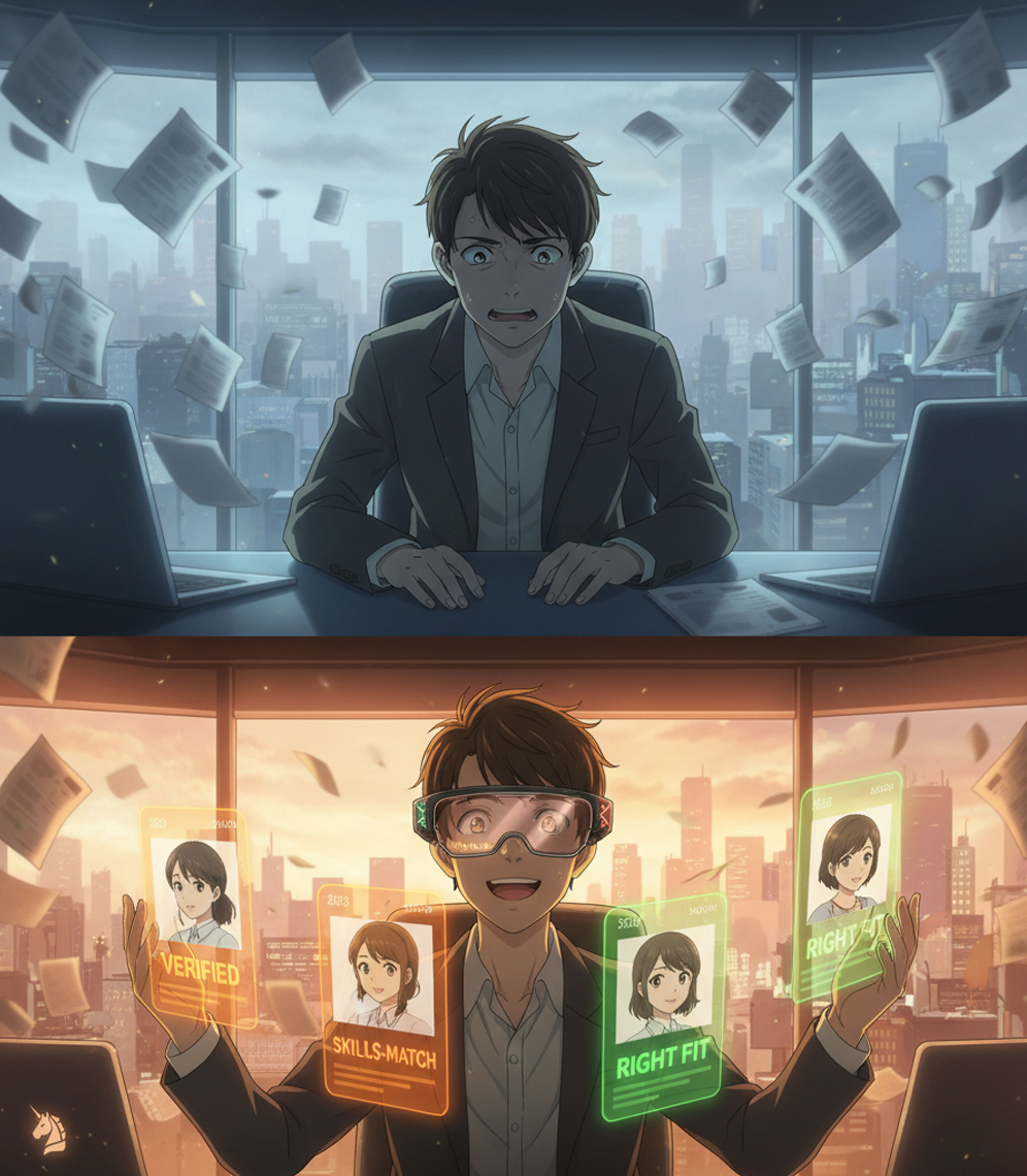 No spam. No fakes. Only **verified, skill-proven, fresher-first** candidates. Faster. Sharper. Smarter.